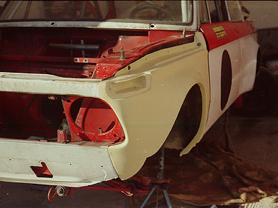 Um die Aerodynamik zu verbessern wurde ein abgeänderter Gruppe 2 Kastenspoiler angebracht - wie ich oben schon beschrieben habe - und ein Heckspoiler vom BMW 2002 Turbo montiert. Die Außenlackierung wurde ebenfals erneuert.