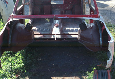 Das Frontinnenleben wurde mit einem Rohrrahmen aus einer Dreiecksgeometrie angefertigt, und mit der Außenhaut verschweißt, so das die komplette Front samt Scheinwerfer Wasser- und Ölkühler abnehmbar ist.